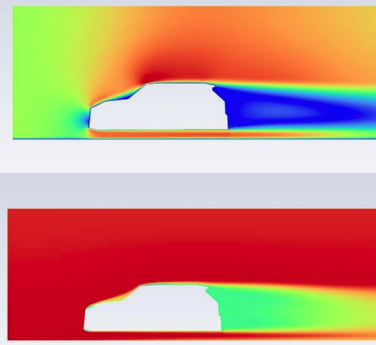 CFD simulations performed in Ansys to analyze the downforce effects on different diffuser angles.